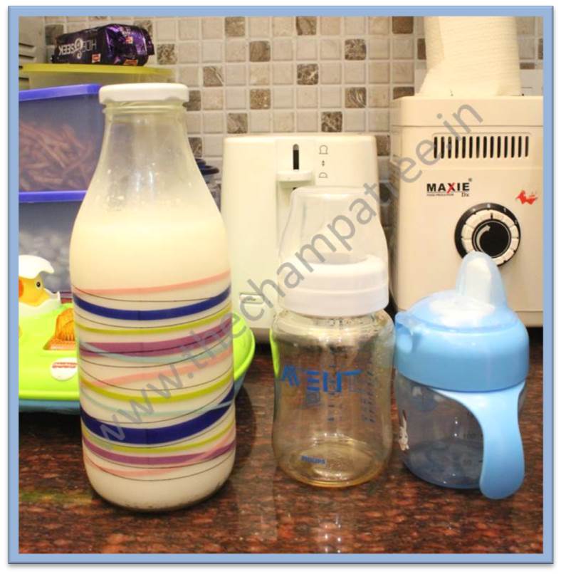 Cow’s milk (toned)/Formula milk. Again, there is no fixed quantity for this. It could be anywhere between 5 ml to 120 ml or even more. Depends on the capacity of your baby.
