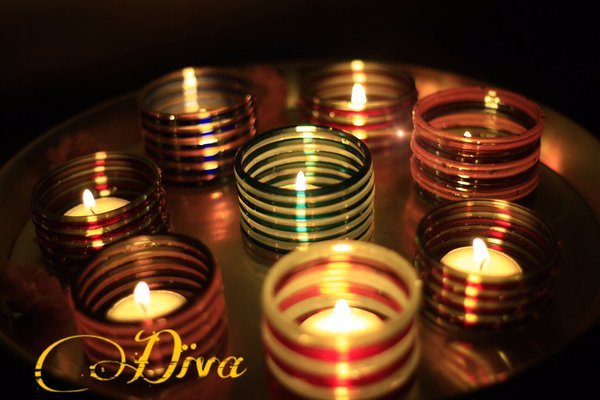 You could make glittery holders or ones out of plain glass bangles. Diwali is an occasion to be unapologetically blingy, so we’d say try out the glittery glass ones.
