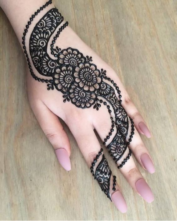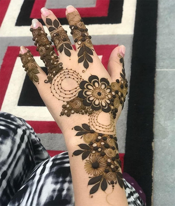 Flowers are symbols of fertility, joy, and happiness. Floral motifs are an integral part of Indian, Pakistani as well as Arabic mehendi designs. They are preferred by everyone and are quite a in demand. What makes these easy front hand mehndi designs beautiful is their curves and various shadings, as well as colors like in Arabic designs. They look attractive and unique for wedding functions or any ceremony.