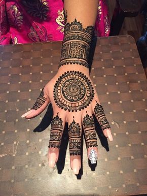 Pakistani designs have flowers cover the fingers, top of the hands, and wrist. Small little oval dot-shaped circles are balanced with the flowers. The diagonal design runs to the tip of the fingers and depicts the depth of the design.