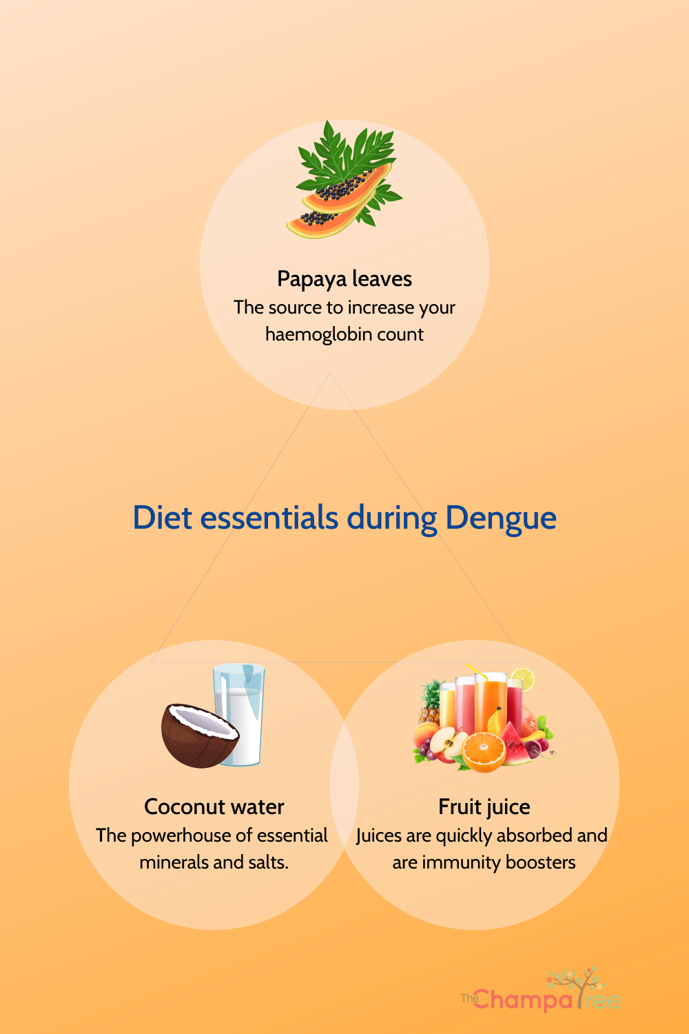 Fresh fruit juices are quickly absorbed by our bodies. One of the biggest after-impacts of Dengue is weakness. Fruit juices, especially citrus fruits, are the best source of vitamins. They are loaded with vitamin C, which is known for its immunity-boosting properties. Just ensure that you squeeze fresh juice at home.
