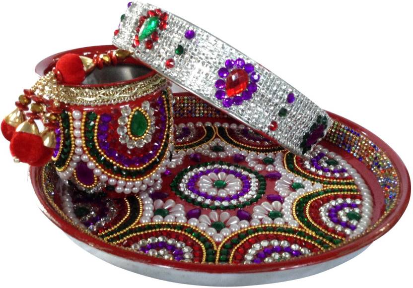Buy velvet cloth decorated Karwa Chauth Pooja Thali here!
